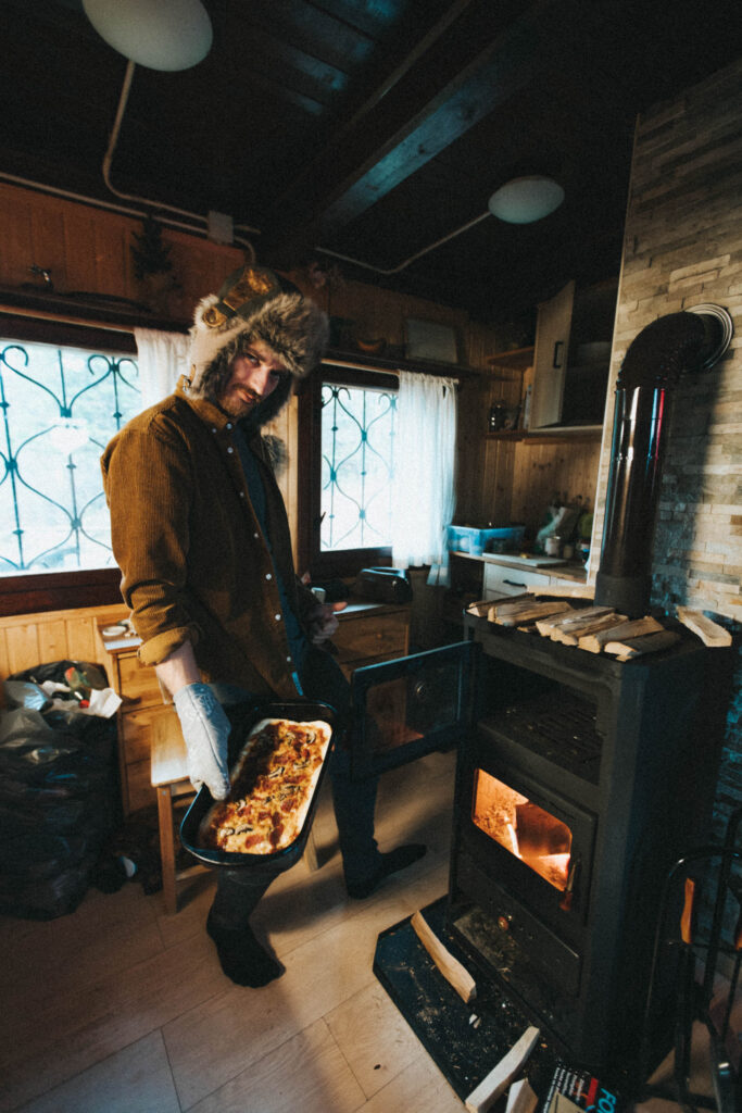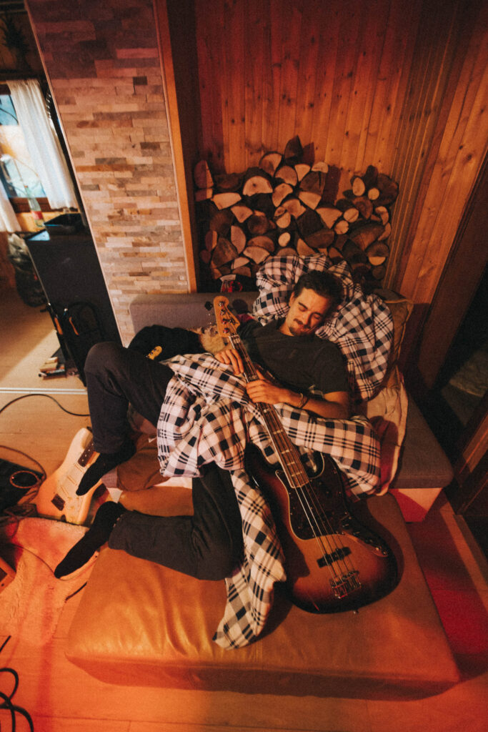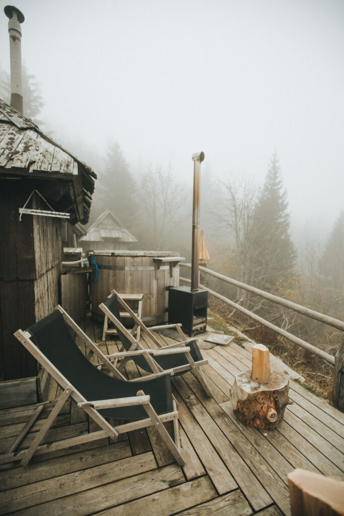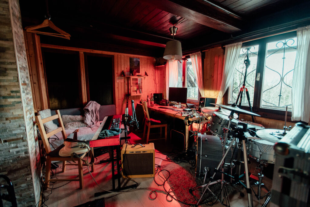 High up, north of Ljubljana, no cars, no roads, just trees and harsh weather. This cabin had it all. The sauna and hot tub were utilized to the fullest. It was here that our single „Don’t Mind“ was created within a few days.